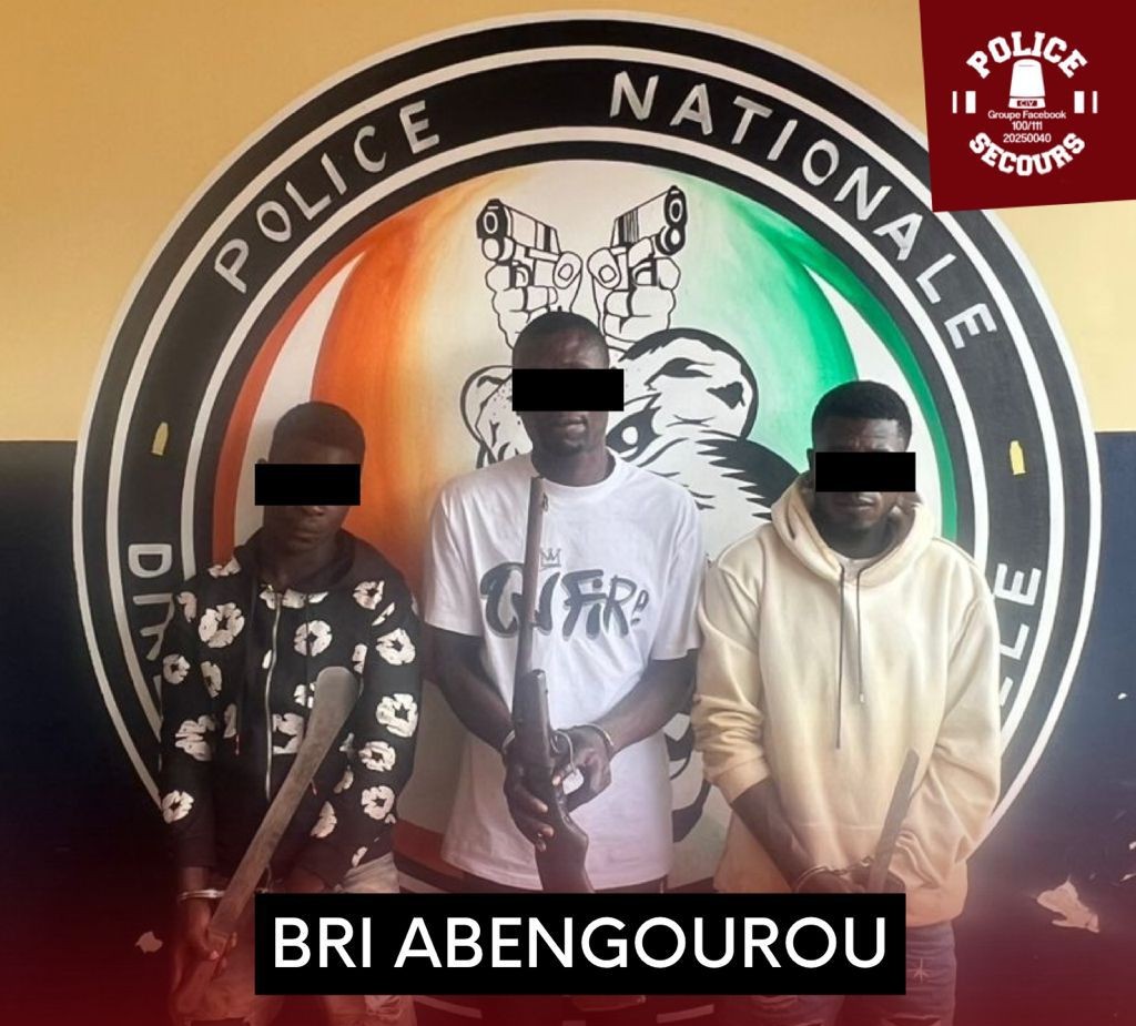 La Brigade de recherche et d’intervention (BRI) d’Abengourou a mis aux arrêts trois individus soupçonnés d’appartenir à un gang spécialisé dans les vols à main armée sur les axes routiers de la région, a rapporté Police secours.