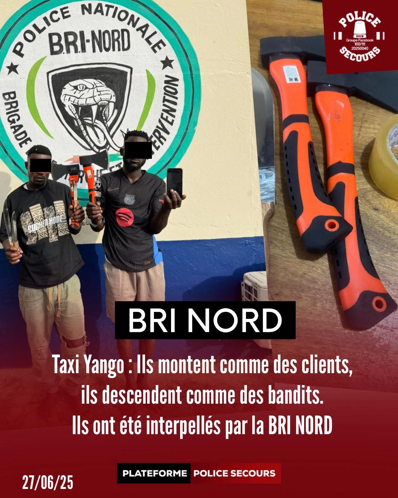 Deux jeunes hommes soupçonnés d’être spécialisés dans les braquages de chauffeurs de véhicules de transport avec chauffeur (VTC), notamment de la plateforme Yango, ont été interpellés, mercredi 25 juin 2025, par les éléments de la Brigade de Recherche et d’Intervention (BRI Nord), a t on appris de source policière.