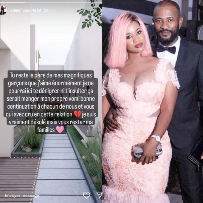 Dans une publication sur son compte Instagram, Adèle Mateh, l’épouse du footballeur a annoncé que leur histoire conjointe avait pris fin.