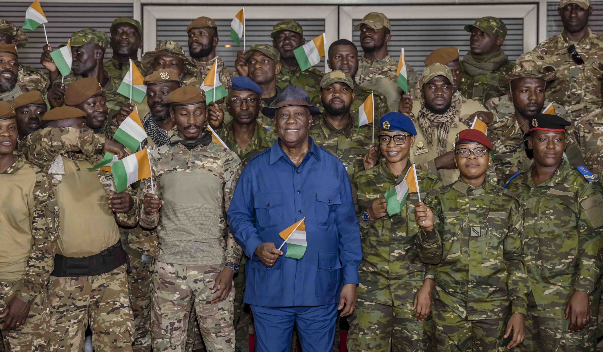 Je voudrais me tourner vers les parents (les époux, les épouses et les enfants) de nos soldats. Je sais que vous avez été angoissé pendant ces six mois. Ce fut des moments douloureux pour vous, mais également pour moi en tant que chef de l’Etat. Oui ! Parce que c’est sur mes instructions que nos jeunes sont allés au Mali pour apporter la paix, à ce pays frère et ami. Voilà que malheureusement pour des problèmes administratifs, une terrible incompréhension s’est installée entre nos frères maliens et nous. Mais, je voudrais vous remercier de votre patience, de votre compréhension, mais également de vos prières et de votre soutien. Je salue toutes les autorités religieuses, les chefs traditionnels, les partis politiques et tous nos concitoyens qui tous les jours ont eu en souvenir, ce travail important, que nos jeunes, nos enfants étaient allés faire au Mali. Aujourd’hui, ils sont de retour et je dois dire que ce sont des héros. “Bravo à vous, jeunes héros“. Comme l’a dit le ministre de la Défense, nous n’avons ménagé aucun effort pour leur retour, mais je voudrais saluer tout particulièrement, mon frère le Président Faure Gnassigbé qui s’est totalement dévoué à faire en sorte que nos soldats reviennent à la maison. Je salue également, mon jeune frère, mon fils, le Président Embalo, président en exercice de la Cedeao qui n’a ménagé aucun effort pour mobiliser la Cedeao, l’Union Africaine et le monde entier pour le retour de nos soldats en Côte d’Ivoire. Je remercie tous les chefs d’Etat, non seulement de la sous région, mais du continent et même au-delà qui se sont impliqués pour que cette incompréhension soit levée. Je salue bien évidemment le secrétaire général des Nations Unies qui s’est intéressé au cas de nos soldats et qui a apporté les clarifications nécessaires. Voyez-vous, quelles que soient les incompréhensions, les frères arrivent toujours à se comprendre et à se retrouver. C’est ce qui s’est passé avec nos frères maliens. Nos soldats, nos enfants sont aujourd’hui de retour. Bravo à vous, chers enfants. Bravo ! La diplomatie a payé. Nous avons préféré cela. Nous estimons qu’avec un pays frère et ami, il n’était pas nécessaire d’avoir une voix autre que celle de la diplomatie. Je me réjouis de vous voir aujourd’hui de retour sur la terre ivoirienne. Nous sommes heureux pour vous, pour nous, pour vos familles et pour la Nation. La Côte d’Ivoire entière s’est mobilisée pour notre cause et du fait que vous soyez descendus avec notre drapeau est très significatif. Je voudrais saluer votre courage, votre discipline et votre ténacité. Je voudrais également rendre hommage à vos supérieurs hiérarchiques. Notamment, le chef d’Etat major général des armée, le général Lassina Doumbia. Mon général, bravo à vous. Bravo d’avoir été en contact avec notre attaché militaire pour continuer de donner le moral à nos jeunes enfants, qui évidemment ont sans doute eu des moments de doute. Mais nous avons réussi. La voie diplomatique était la seule voie à emprunter. Voici qu’elle a abouti. Je voudrais vous remercier d’avoir fait honneur à la Côte d’Ivoire, à son drapeau et à la Nation Ivoirienne. Je voudrais que vous sachiez que la Côte d’Ivoire continuera d’apporter son soutien à tous les pays frères africains ou autres qui ont besoin d’évoluer vers la paix. Je l’ai souvent dit, sans paix, il n’y a rien d’important pour une Nation. La paix, la paix, la paix est la chose essentielle. Vous étiez parti pour apporter la paix au Mali. Je souhaite ardemment que ce pays frère retrouve la paix, arrive à combattre le terrorisme, l’insécurité afin de faire des élections démocratiques et constitutionnelles dès l’année prochaine, comme arrêté d’un commun accord entre les autorités maliennes et la Cedeao. Je voudrais dire que plusieurs sommités, amis de la Côte d’Ivoire se sont déplacés au Mali, ce n’était pas pour interférer avec le processus, mais pour montrer leur soutien à la stratégie qui avait été arrêtée. Je salue tout particulièrement, les chefs religieux maliens habitant la Côte d’Ivoire qui dès le début ont formé une délégation pour se rendre au Mali et expliquer que cette situation pouvait être dangereuse. Merci ! Chers Imams pour avoir fait ce déplacement. C’était important d’expliquer que selon les statistiques officielles, il y a plus d’un million deux cent mille maliens qui vivent en Côte d’Ivoire. Ils sont totalement intégrés et contribuent au développement de notre beau pays. Il fallait tout faire pour maintenir ces liens séculaires, d’amitiés et fraternels entre la Côte d’Ivoire et le Mali. Je suis heureux que nous soyons parvenus à régler ce problème sans autres difficultés. Bien évidemment, maintenant que cette crise est derrière nous, nous pourrons reprendre des relations normales avec le pays frère qu’est le Mali, qui a besoin de nous et dont nous avons besoin également. Les maliens sont nos frères et les Ivoiriens sont les frères des maliens. Il ne peut donc pas y avoir de situation sans solution. Malgré tous les contacts que nous avons eus, le contact le plus important a été la visite que la délégation ivoirienne dirigée par le ministre d’Etat, ministre de la Défense Téné Birahima Ouattara a rendu à ses frères maliens. Accompagné de plusieurs autres ministres, il est allé dire aux maliens que la fraternité exige que nous puissions parvenir à une solution. Et la solution, la voici. Chers soldats, vous êtes de retour sur la terre natale et nous sommes fiers que vous soyez là ce soir. La Nation ivoirienne toute entière, s’est mobilisée aussi et je voudrais vous dire que grâce, à votre discipline, votre résilience et aussi à votre amour pour la nation, nous sommes arrivés à nos fins. Je voudrais féliciter le gouvernement e