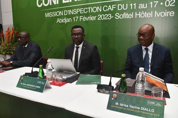 La Confédération Africaine de Football (CAF) a mené une mission d’inspection en Côte d’Ivoire, du 11 au 17 février 2023, pour évaluer l’avancement des travaux des infrastructures devant abriter la CAN 2023. « Les infrastructures que je viens de visiter s’annoncent dignes de la Coupe du Monde de la FIFA », conclu M. Veron Mosengo-Omba, le Secrétaire Général de la CAF lors de la conférence de presse qu’il a animée, vendredi soir à Sofitel Hôtel Ivoire à Abidjan.