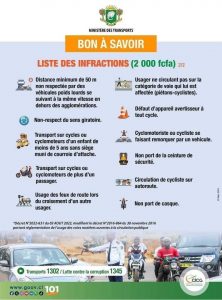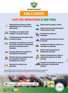 Dans le cadre de la lutte contre l’incivisme routier, le Gouvernement a adopté un décret portant réglementation de l’usage des voies routières ouvertes à la circulation publique. ci dessous la liste