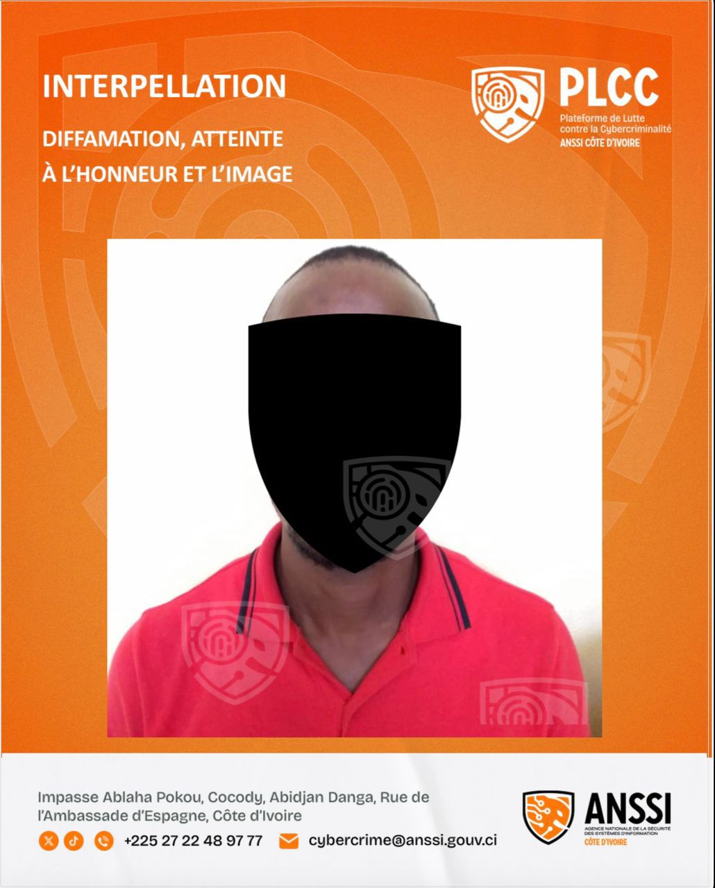 Alertée, Mme A.B.S. a aussitôt saisi la Plateforme de Lutte Contre la Cybercriminalité (PLCC), avec le soutien de l’Agence Nationale de la Sécurité des Systèmes d’Information (ANSSI). Les enquêteurs n’ont pas tardé à retrouver la trace de l’auteur de la publication diffamatoire : un certain T.B.J.