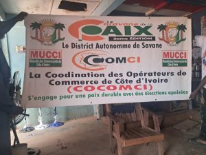 La coordination des opérateurs de commerce de Côte d’Ivoire commerçants de Cote d’Ivoire réuni autour de la mutuelle des commerçants de côte d’Ivoire. Soro Fousseni président régional et secrétaire générale du district autonome des savanes (poro, tchologo, bagoué) ont plaidé pour la libération des voies d’accès au marché central de Korhogo au Nord de la Côte d’Ivoire.