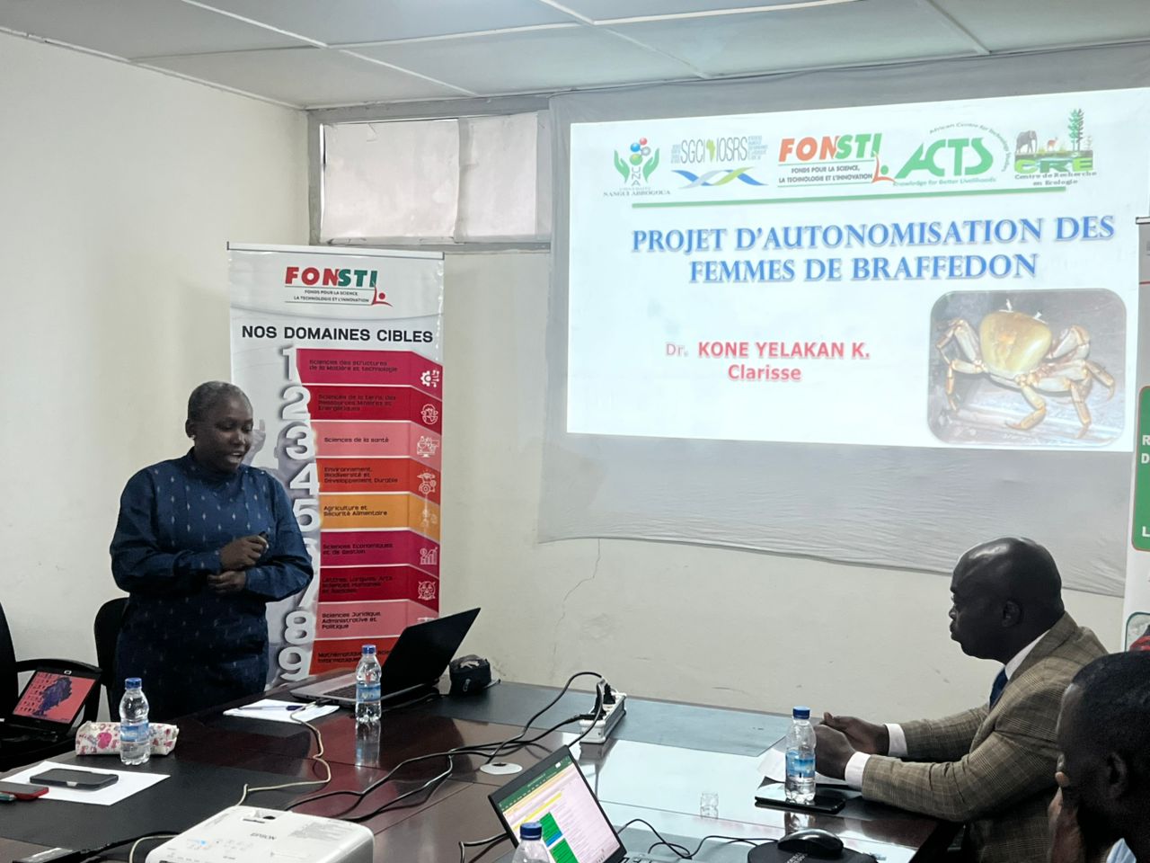 Financé par le Fonds pour la Science, la Technologie et l’Innovation (FONSTI), ce projet a permis de former et d’équiper une coopérative féminine du village de Braffédon (Grand-Lahou) pour une production durable du crabe poilu, espèce fortement convoitée.