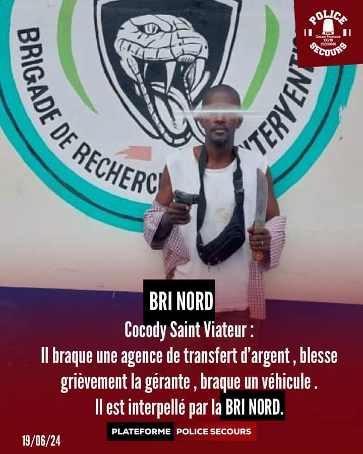 Le braqueur , identifié comme K D, agé de 43 ans domicilié à Abobo Akekoi, a pris la fuite en braquant un véhicule de marque Toyota Corolla de couleur grise.