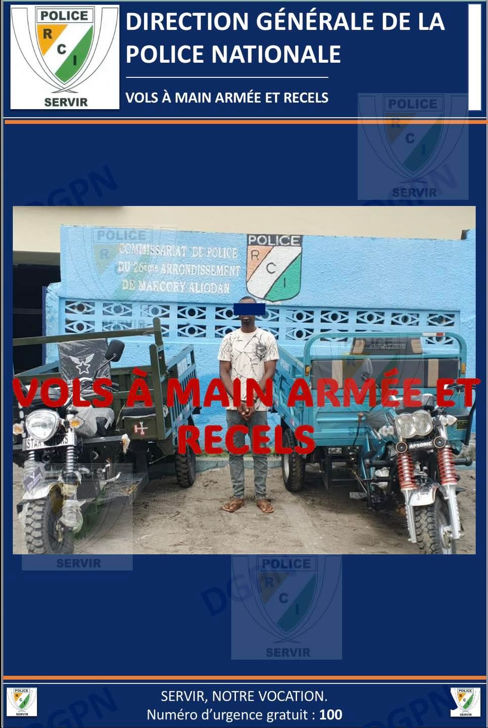 Le mis en cause, identifié sous les initiales K.Y, âgé de 37 ans, est accusé d’avoir pris part à plusieurs opérations de vols d’engins aussi bien dans le district d’Abidjan que dans plusieurs localités de l’intérieur du pays.