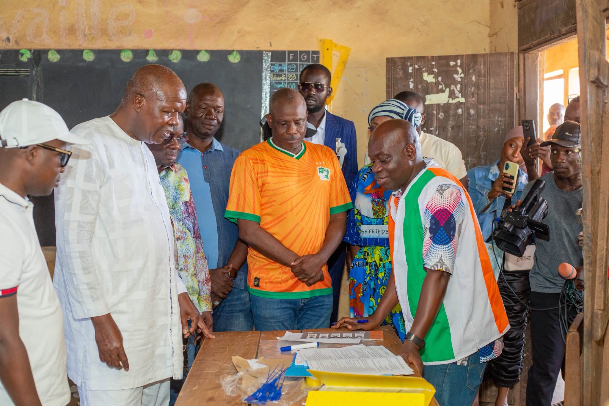 Après avoir accompli son devoir civique ce samedi 25 octobre 2025 au bureau de vote EPP Glileu, à Zouan-Hounien, le ministre Albert Toikeusse Mabri a effectué une tournée dans plusieurs centres de vote des départements de Danané et de Man.