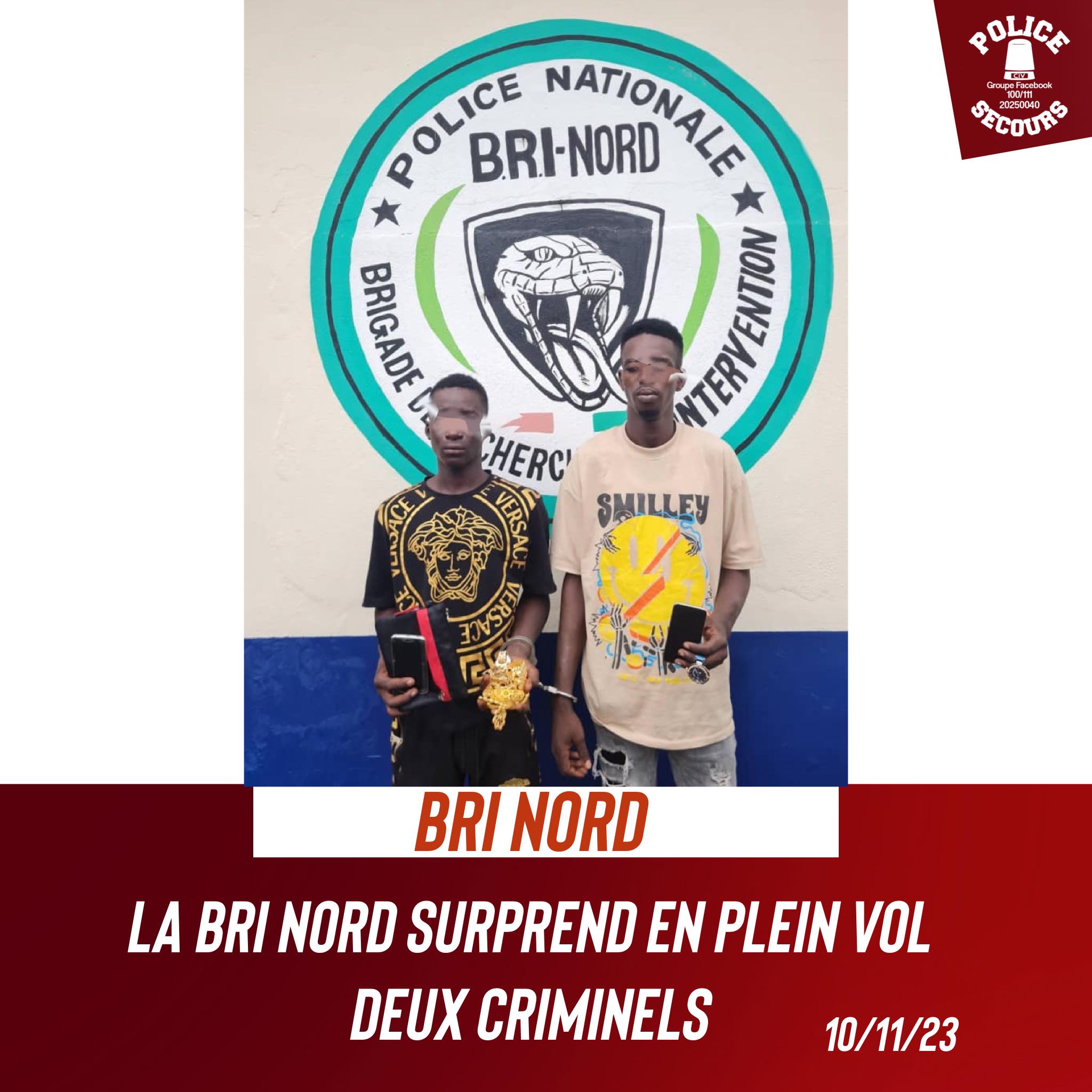 Dans la nuit du mercredi 08 au jeudi 09 novembre 2023, la Brigade de Recherche et d’Intervention ( BRI Nord ) a démontré une fois de plus son efficacité en appréhendant deux individus en plein vol. Les suspects, identifiés comme K I alias SKAFÉS et D L, ont été pris en flagrant délit de vol lors d’une patrouille nocturne.