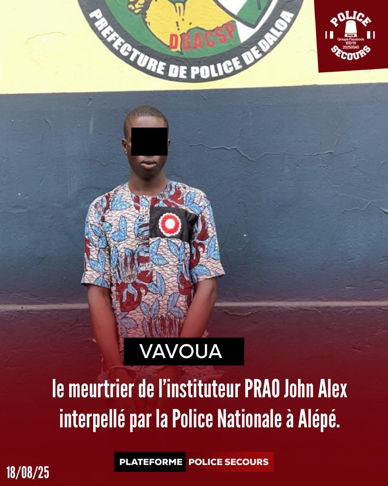 Vavoua: Le Meurtrier de l’instituteur PROA Jhon Alex interpellé a Alépé par la Police Nationale.